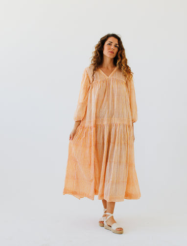 Our dresses are made in India, botanically dyed and printed using one of India's oldest trades, block-printing. This ancient technique finds a caste of generational 'chippas' stamping lengths of cotton fabric with color using hand-carved wood blocks.