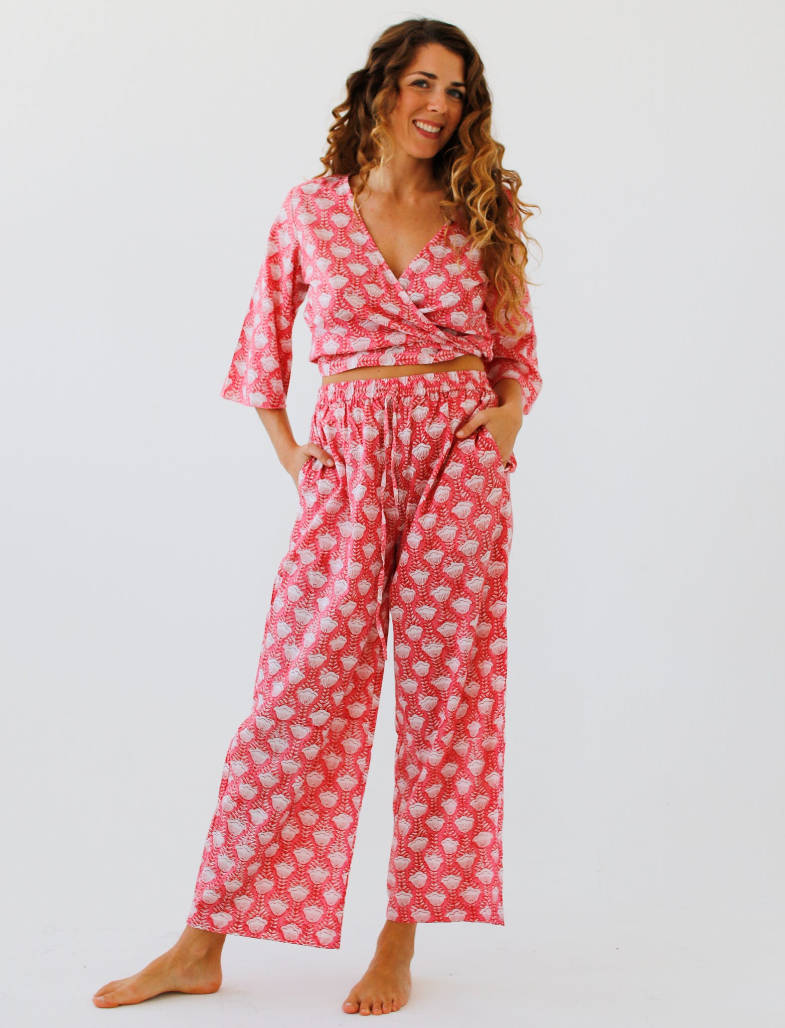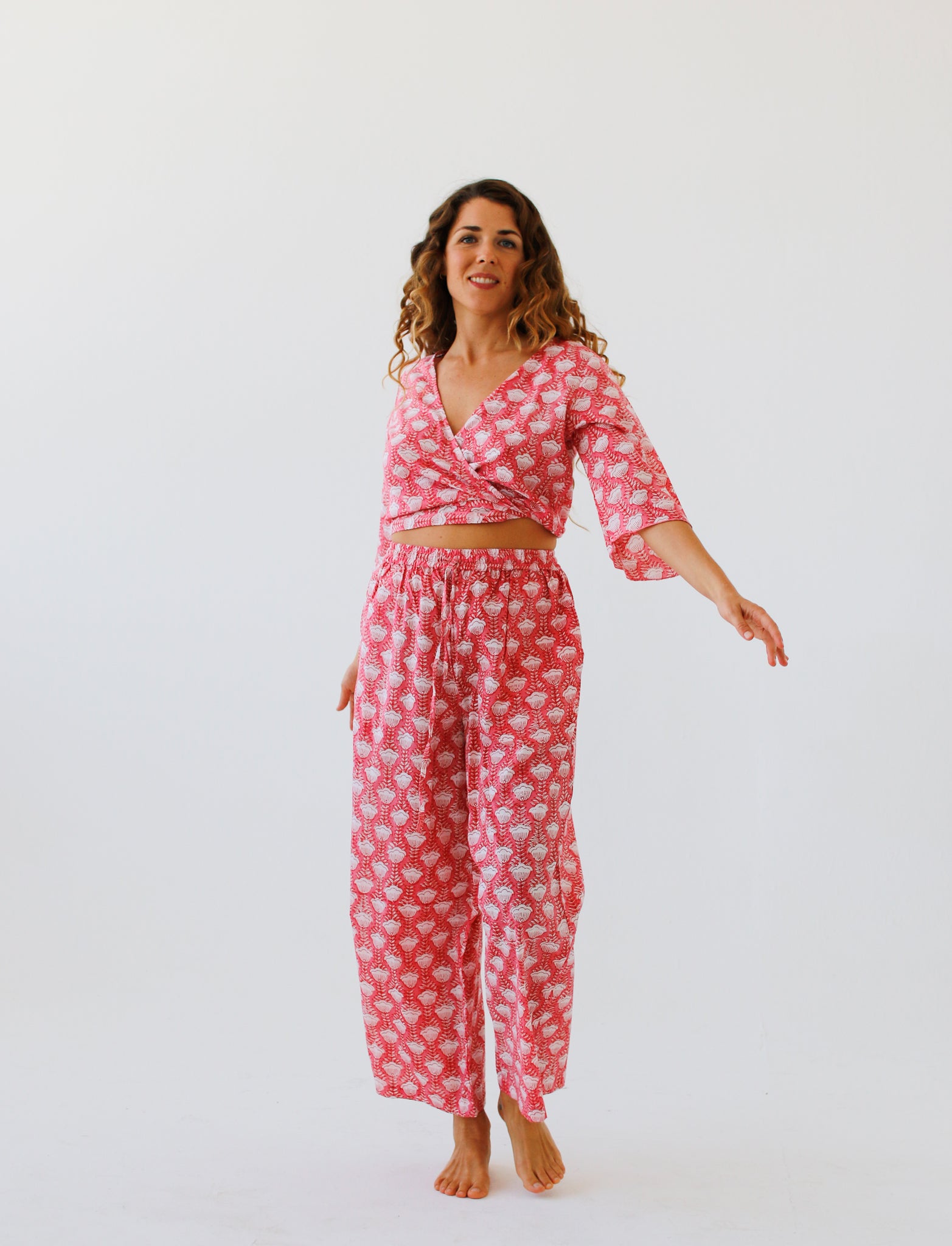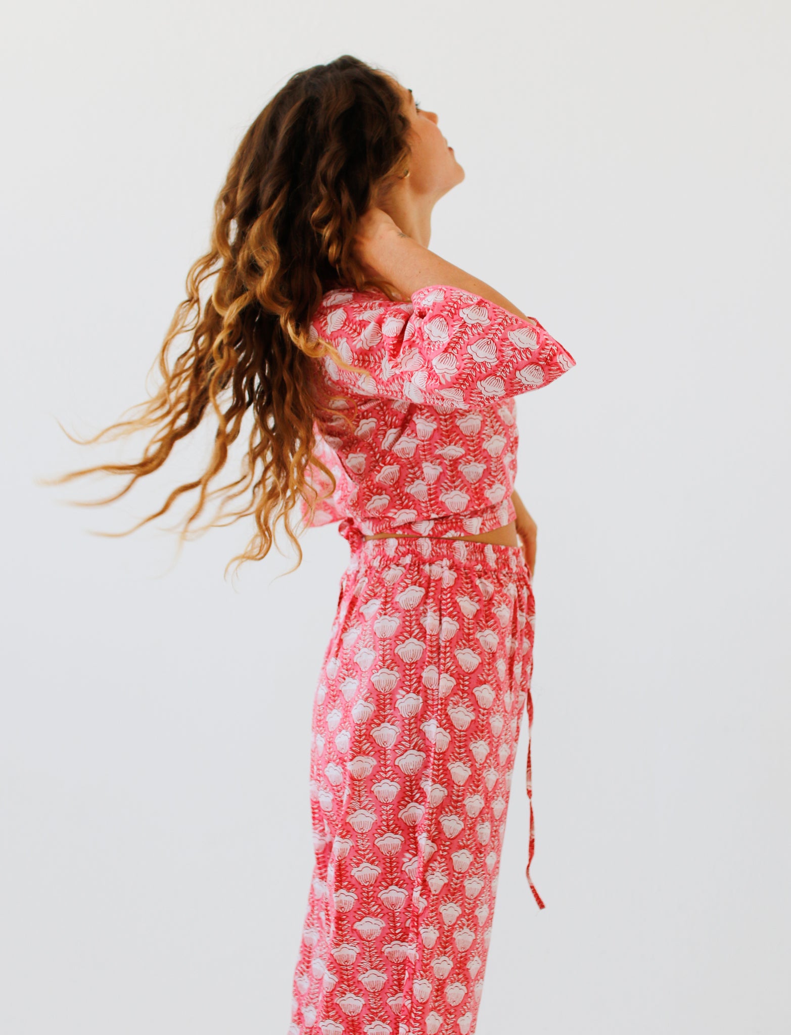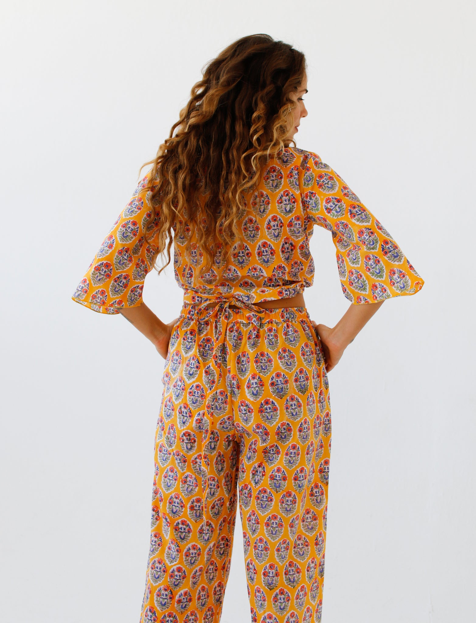 Indian cotton dresses, hand block-printed ~