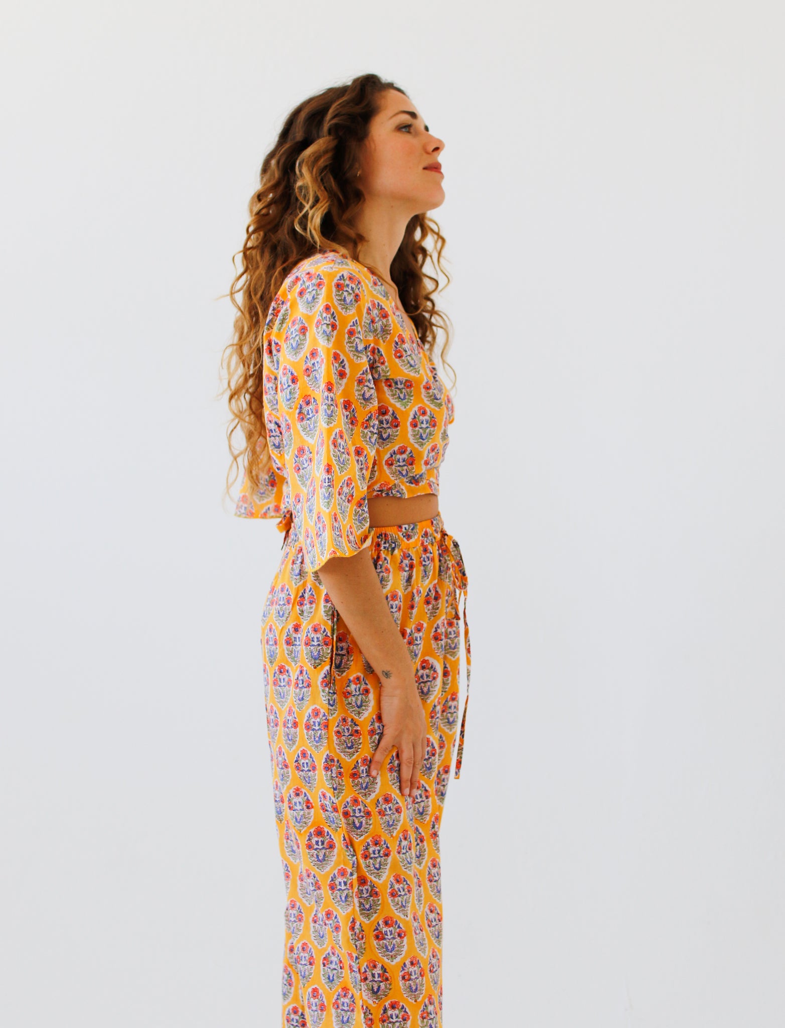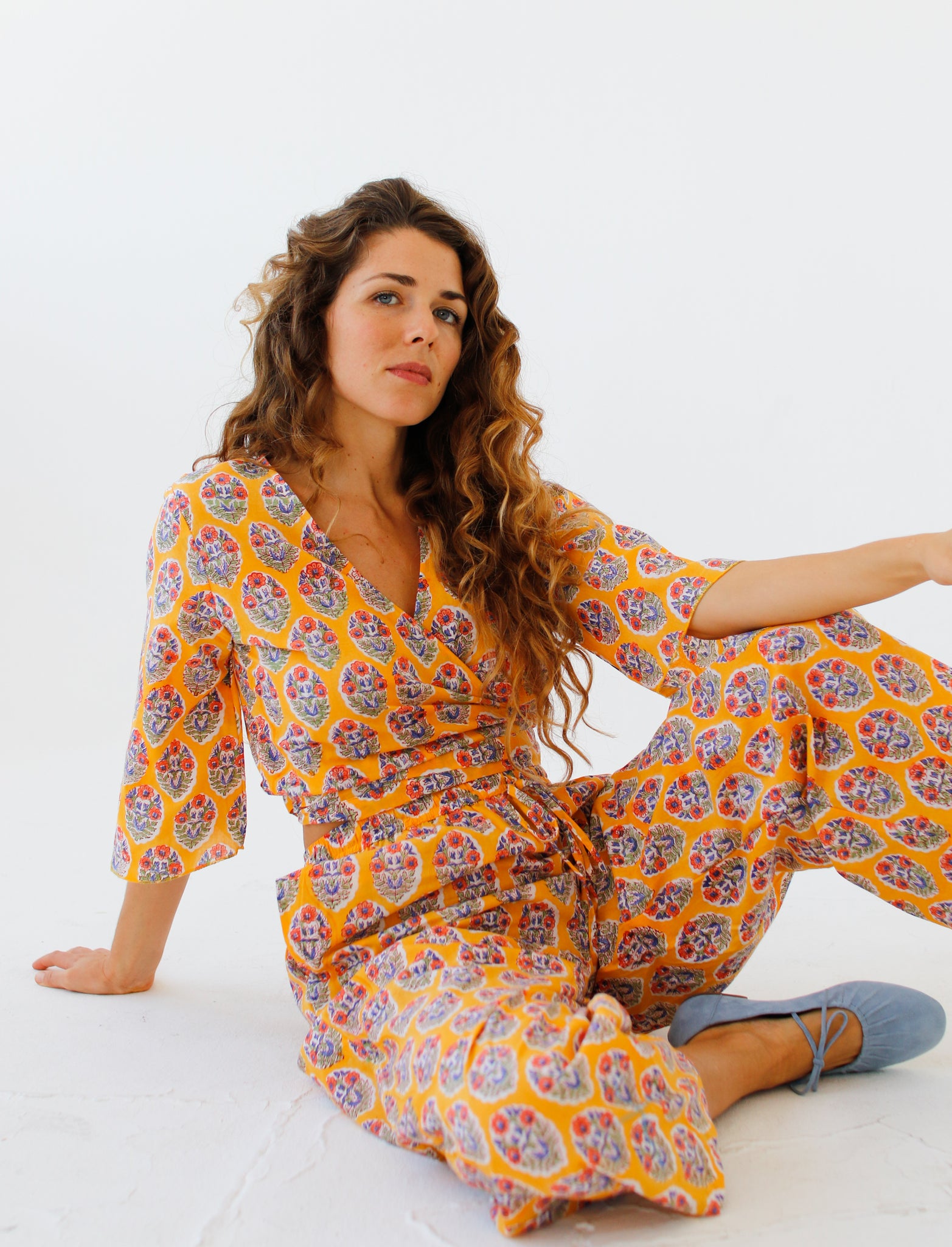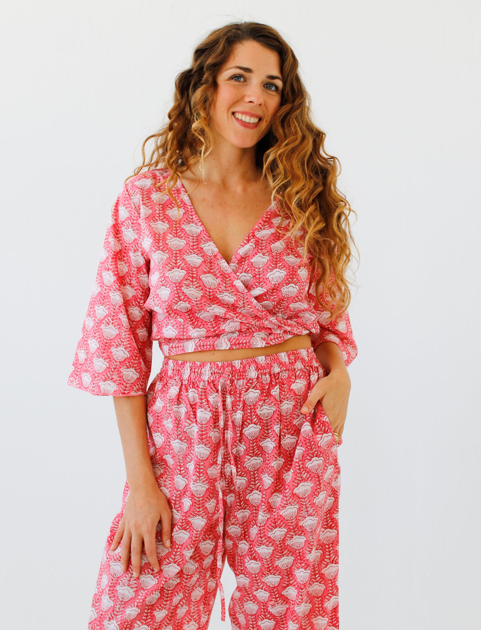 Indian cotton dresses, hand block-printed ~