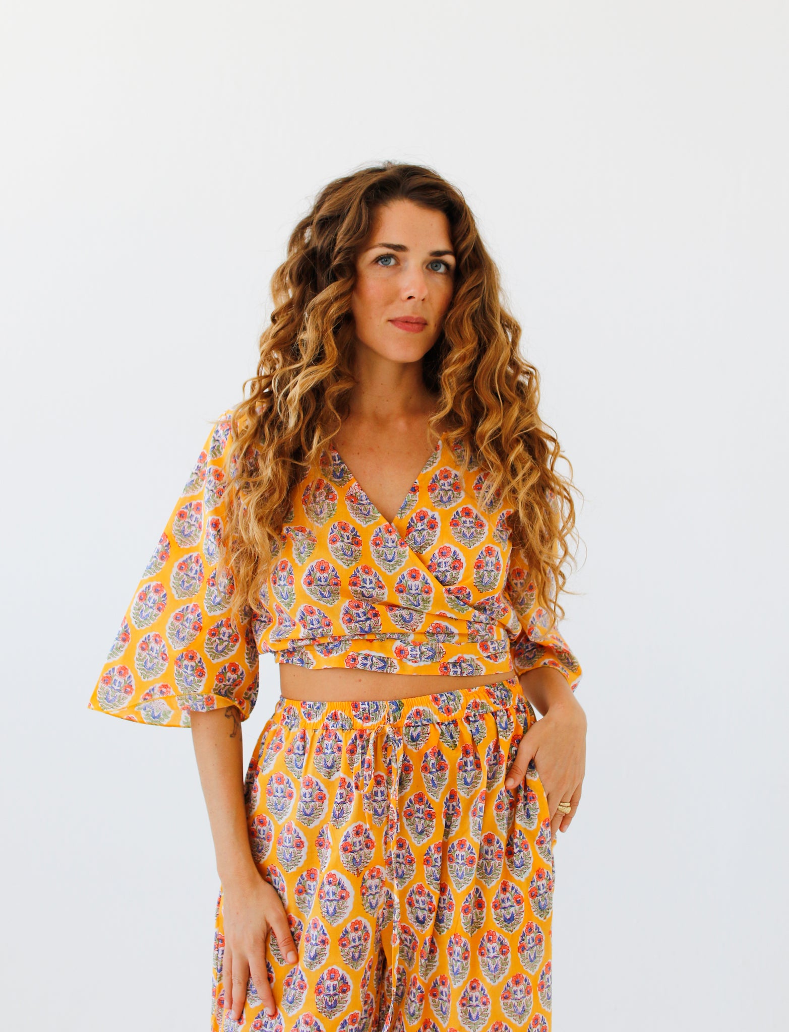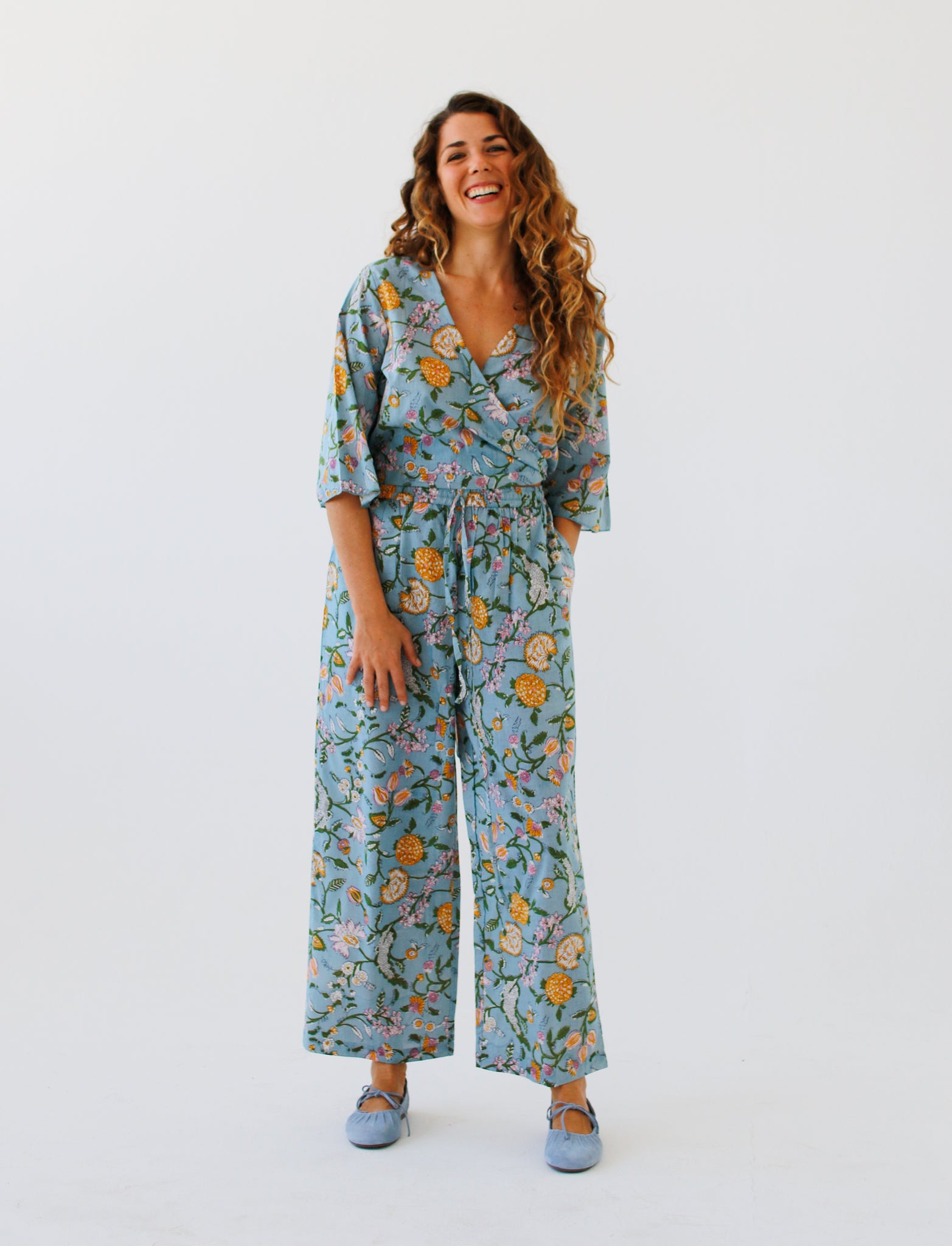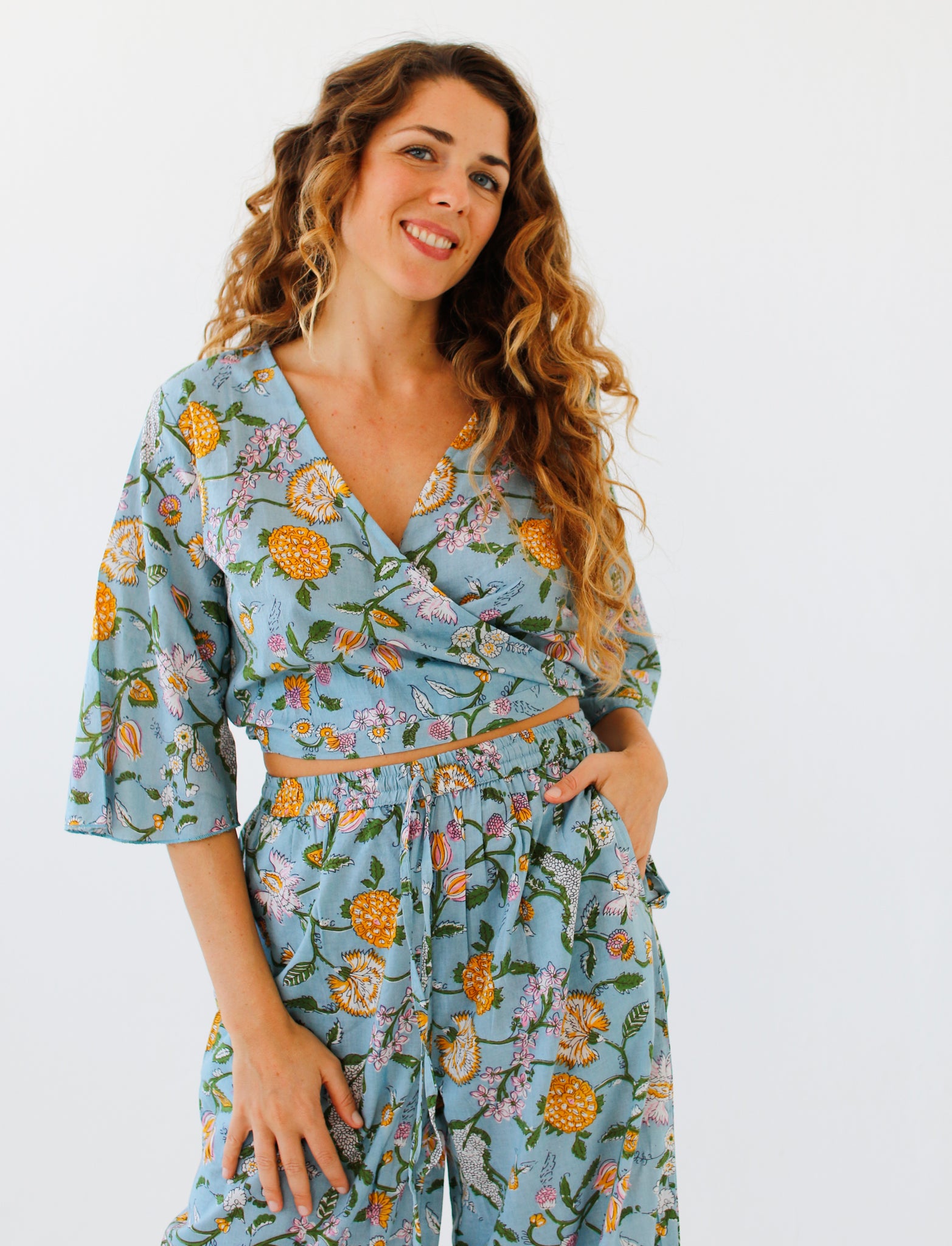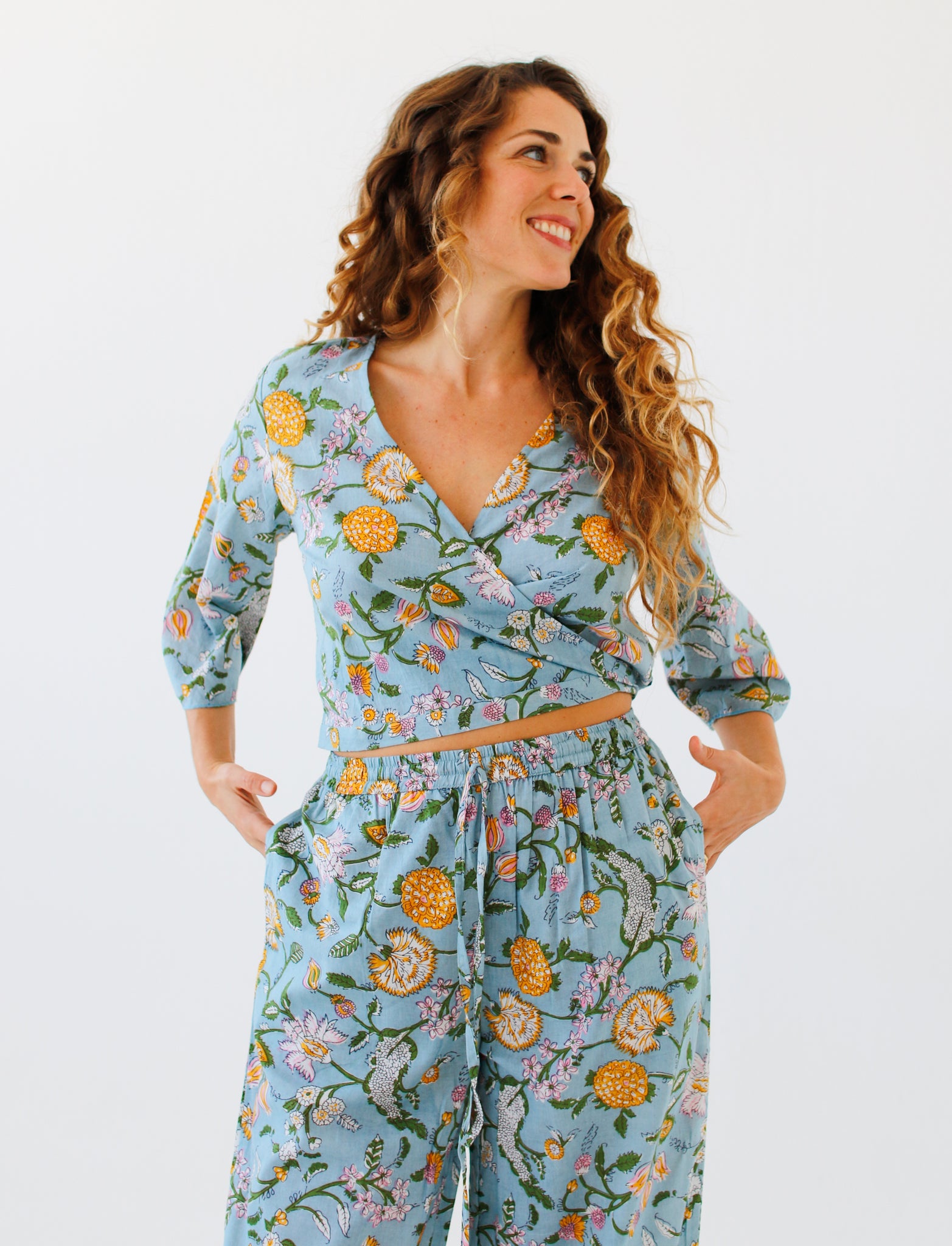 Indian cotton dresses, hand block-printed ~